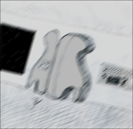 Drinjarmaes flailed around desperately trying to defend himself. The flashing lights were everywhere and the alarming noise was merciless. Unable to see clearly he felt himself colliding with things in his midst. He hit something low and doubled over on to it. The object made several audible clicks.